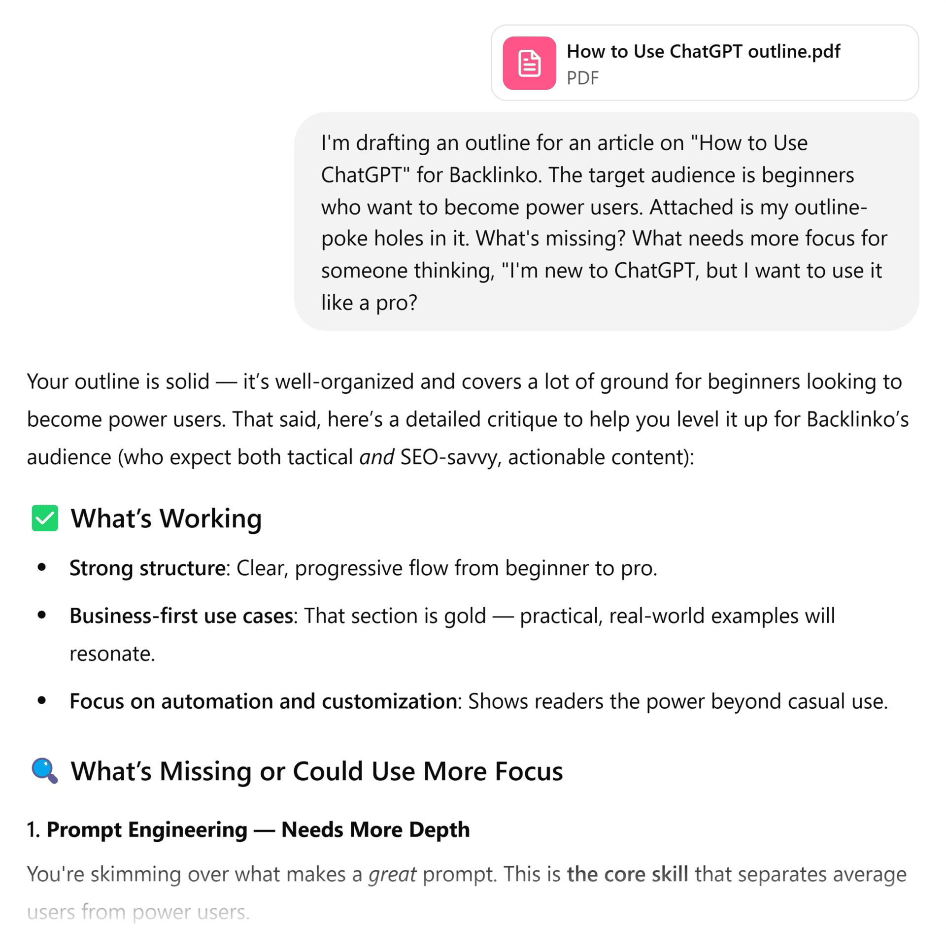 So, instead of saying, “Give me an SEO strategy,” or “Give me content ideas,” specify a framework.