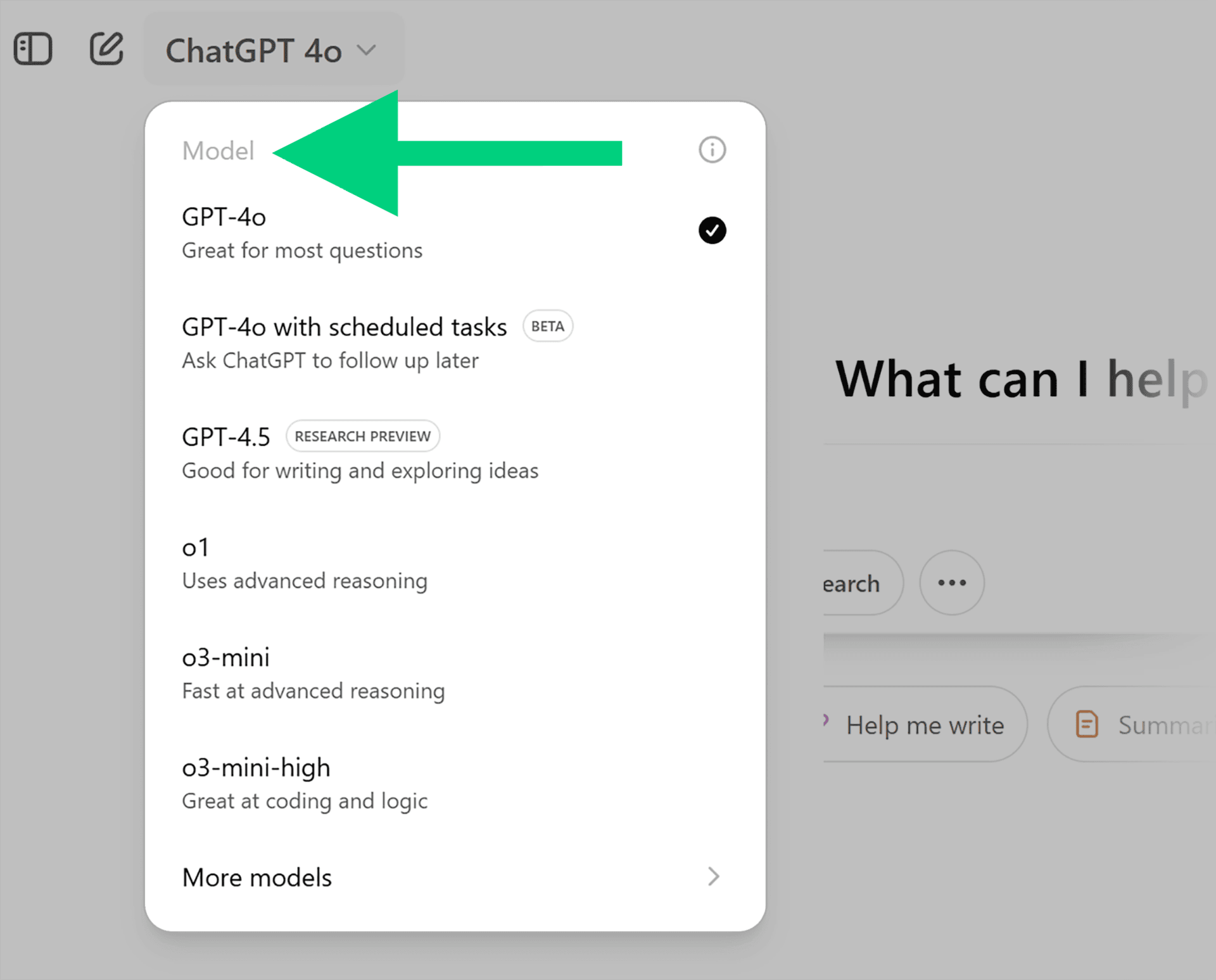 | GPT-4.5 | Advanced model for reasoning and creativity. Better pattern recognition. |