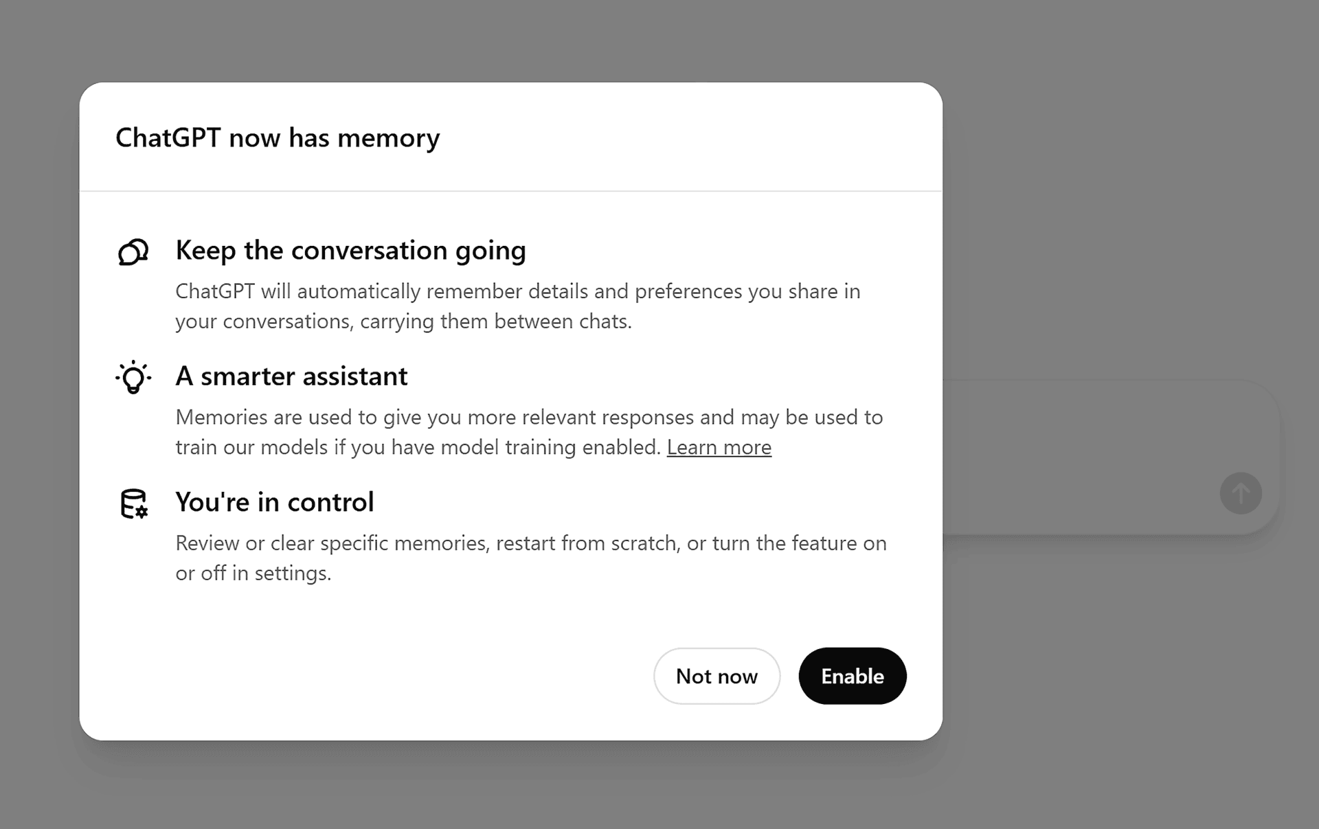 And finally, choose if you want ChatGPT to remember your conversations (you can change this later).