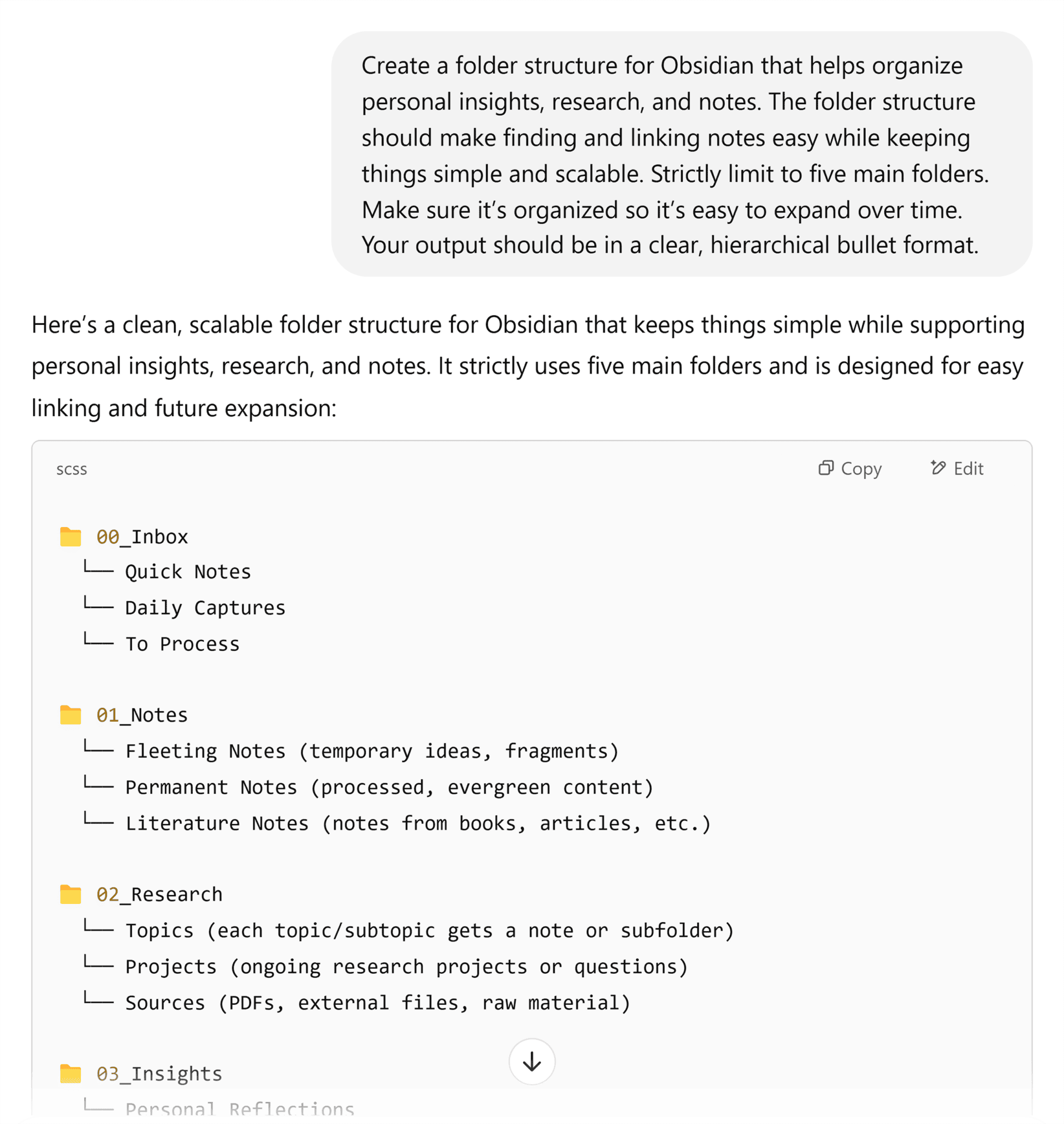 This response gave me a solid starting point to structure my folders.