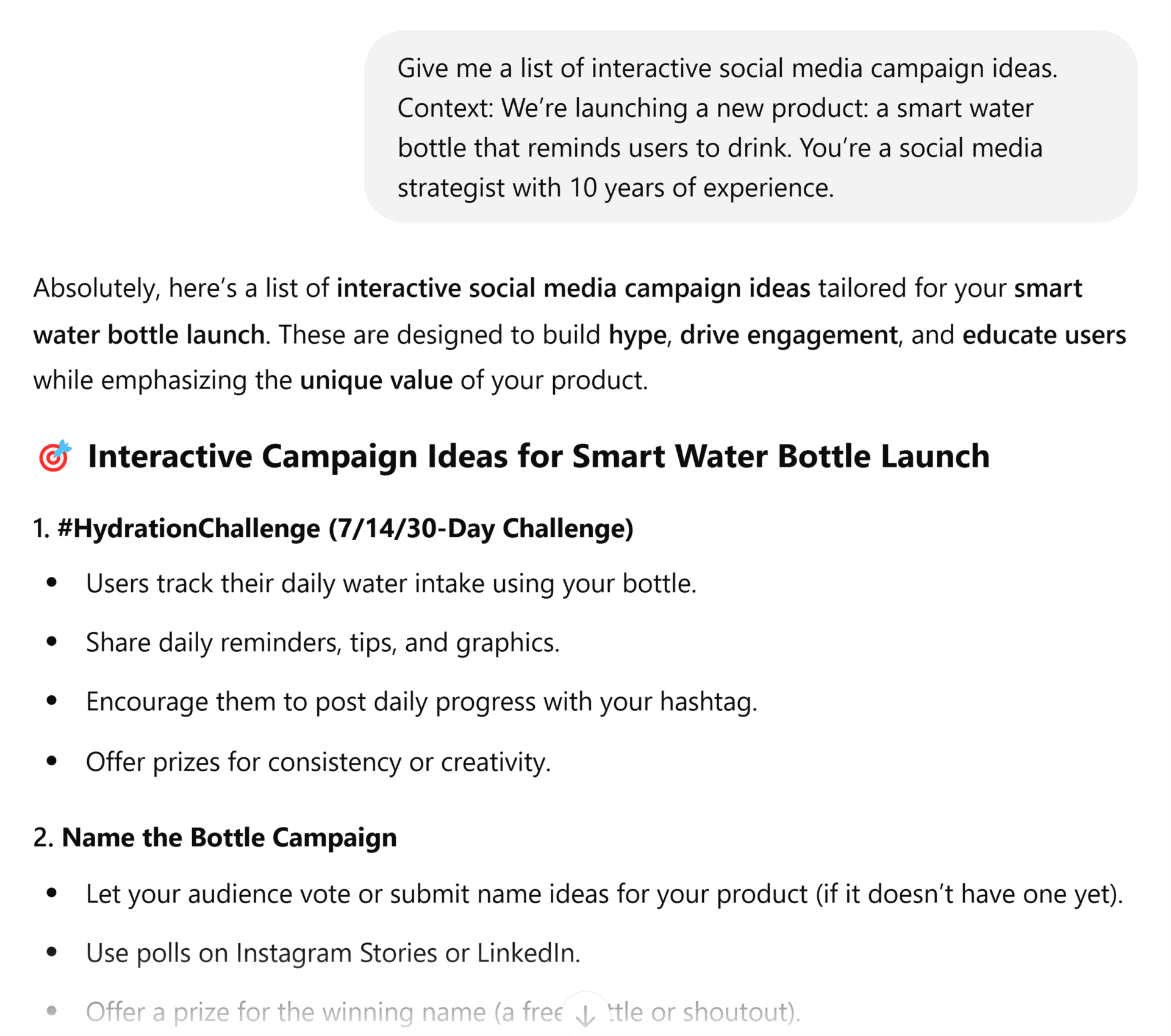 Imagine you’re a social media manager launching a smart water bottle that reminds users to drink.