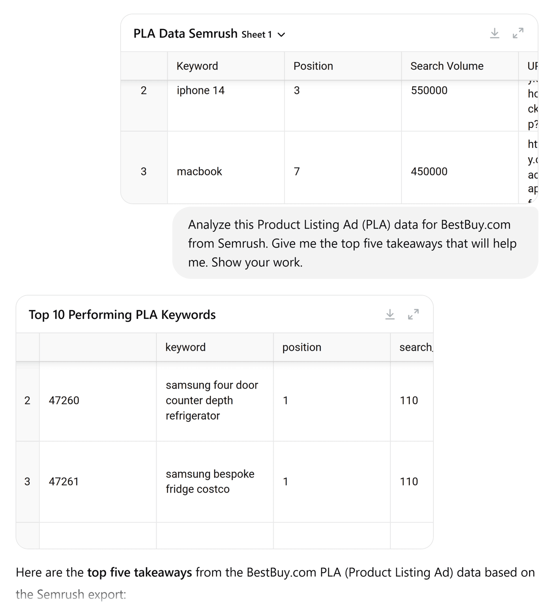 Just like that, ChatGPT will identify patterns and trends from the Semrush data: