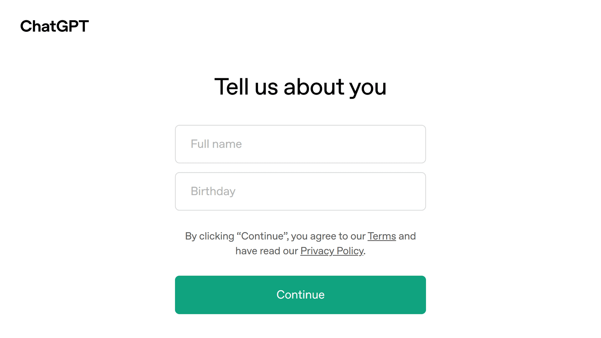 Then, add your name and birthday (both are required).