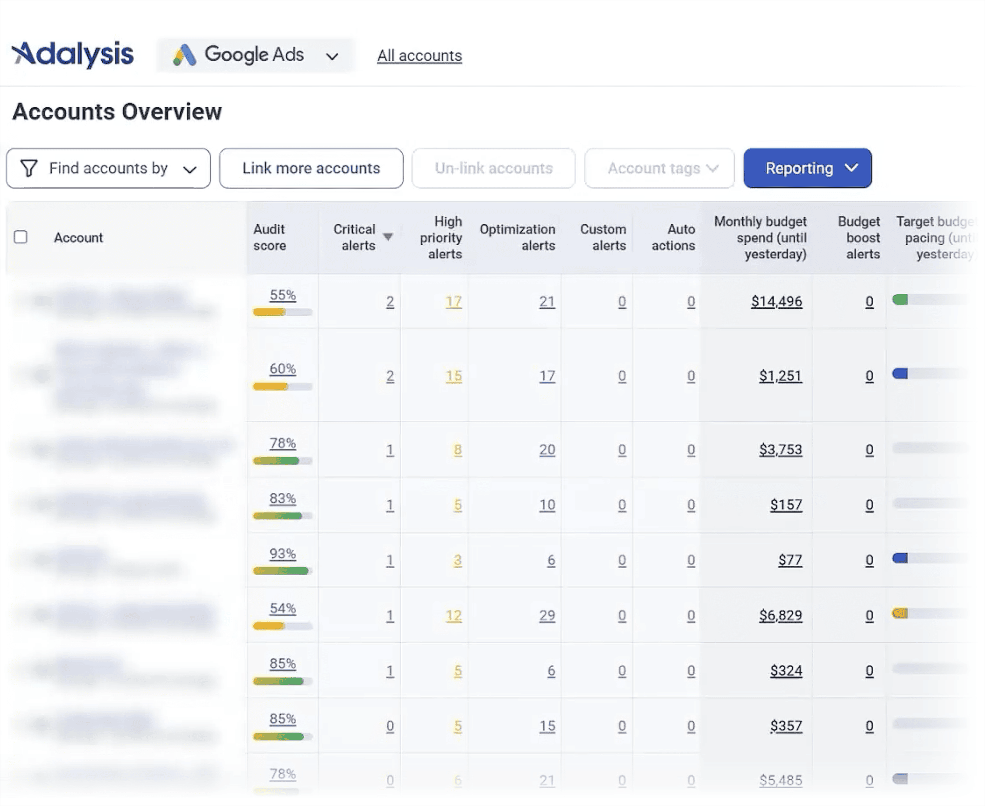 Switch to Full Automation, and Adalysis dynamically adjusts budgets based on your goals.