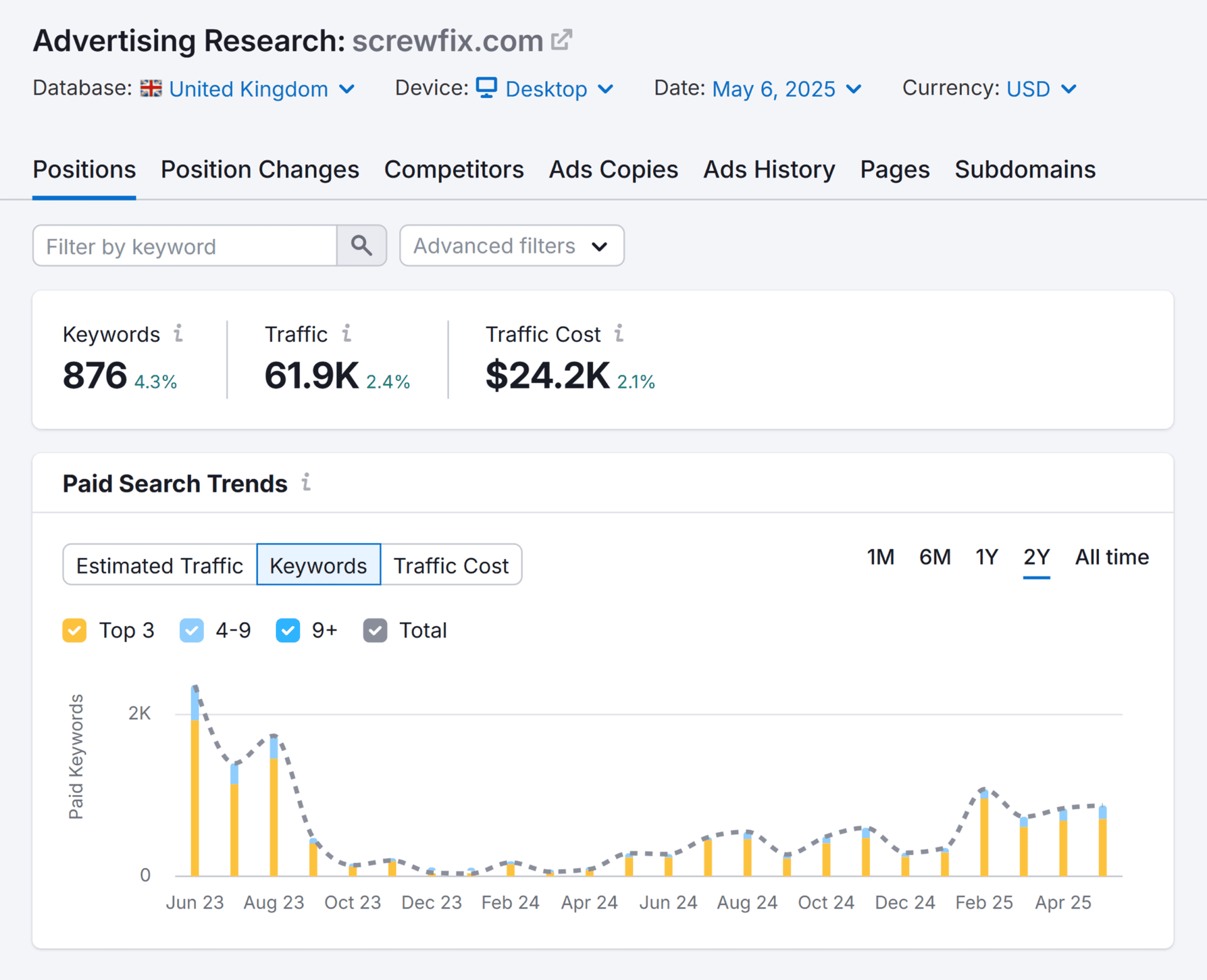 For example, if you’re running PPC for Toolstation, you might want to analyze Screwfix’s paid search strategy.